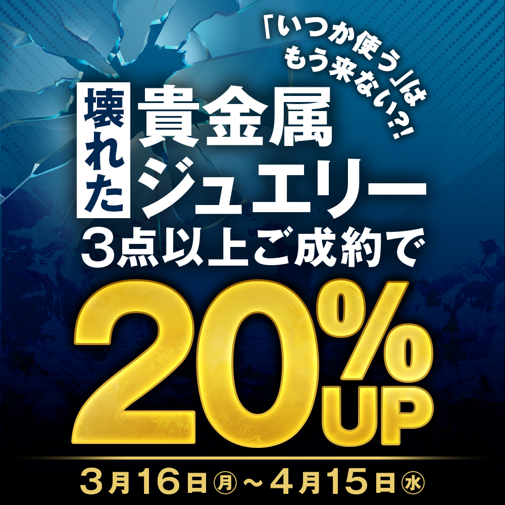 【期間限定】「いつか使う」はもう来ない⁉︎ 壊れた貴金属・ジュエリー 3点以上で20%UP!