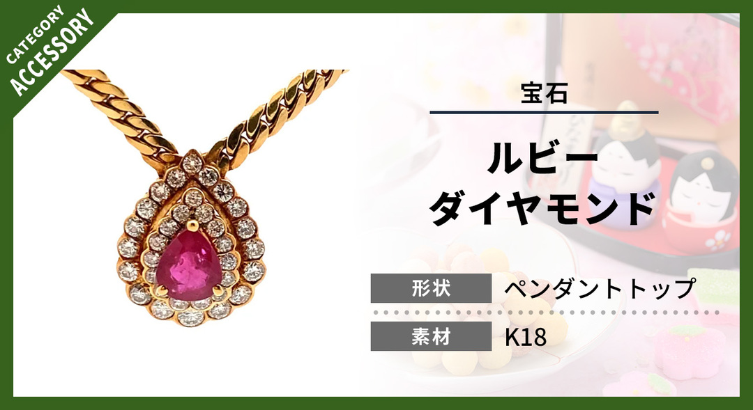 ルビー・ダイヤモンド ペンダントトップは、宝石の品質やカラット数によって査定評価が変動します。